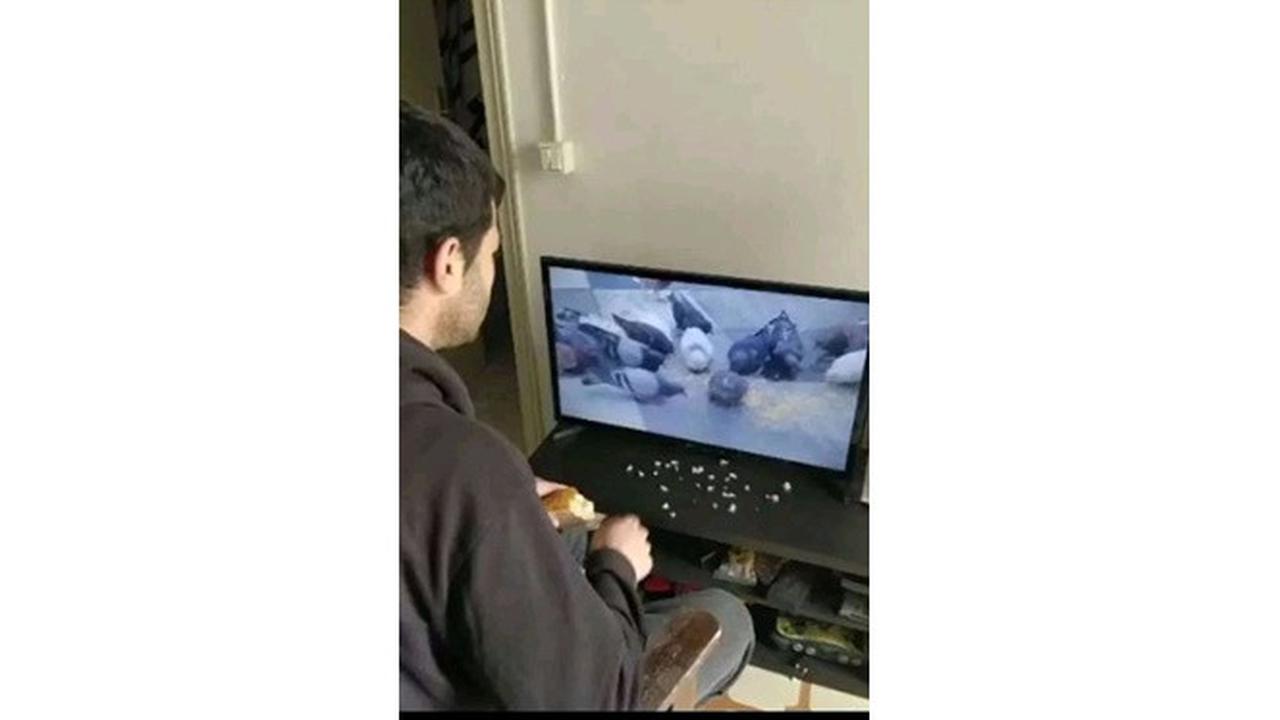 4. Duh, kok malah jadi ngasih makan burung di televisi sih.
